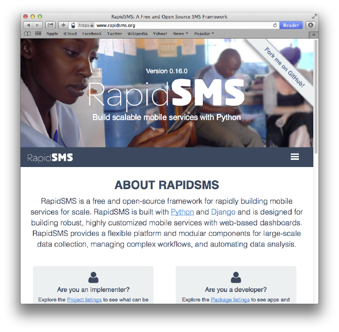 Part way through the development tasks for the RapidSMS project, it was brought up on the RapidSMS community mailing list that rapidsms.org was being reported as a source of malware by Google. This motivated an already present need to rebuild RapidSMS.org as a sharing platform for both types of the RapidSMS framework users—software engineers & mobile health project coordinators.