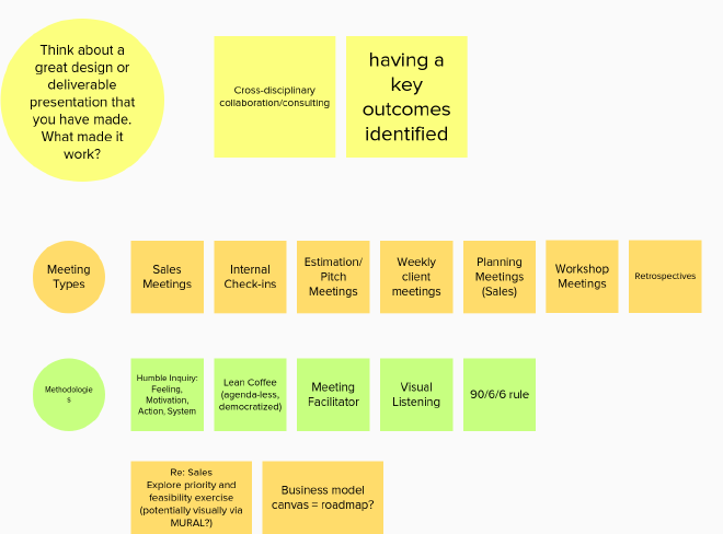 Inspired by a recent workshop hosted by the [Triangle User Experience Professionals Association TriUXPA on designing better meetings, NC Nwoko teamed up with Tania Lee. The two used UX Design principles to generate ways to improve meetings here at Caktus. They focused on ways to prioritize ideas to determine meeting agendas, make meetings more visual, improve meeting experience for those working remotely, ask better questions, and become better meeting facilitators.