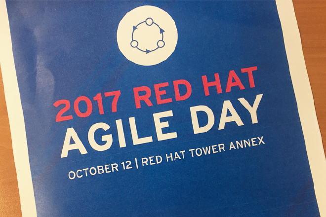 Red Hat Agile Day, held in downtown Raleigh, recently provided this unique opportunity. The theme of the 2017 Red Hat Agile Day was “Agile: brokering innovation; bringing together great ideas.” The conference certainly lived up to that theme with a diverse line-up of speakers, including a former professional opera singer who bookended his presentation with songs. One was a creative, original ballad about being an Agile product manager (see the lyrics here), which he delivered at full blast, because how else can you sing opera?