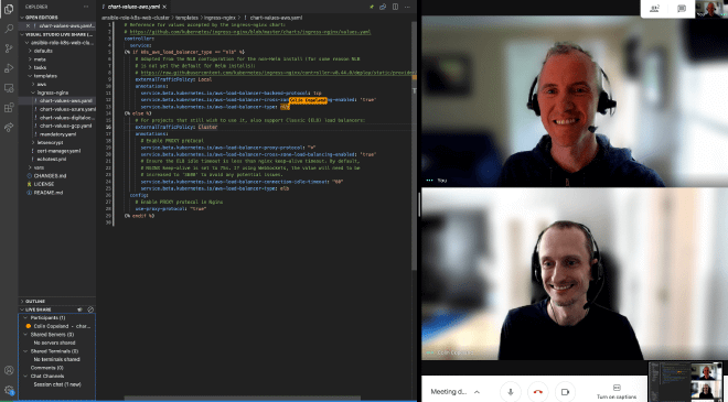 Colin explains that since VS Live Share allows them to share the same file tree in a session, they can quickly jump to and reference other files in the codebase while working on a solution together. Sharing the same interface simplifies the experience, allowing developers to augment one another or think ahead in a way that’s otherwise not possible.