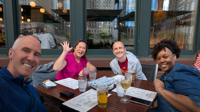 Tobias: I enjoyed being in Chicago with the Django community. In addition to the talks and hallway track during the conference itself, each evening was packed with different activities and dinner options. My favorite part of conferences is always getting to meet new people in a new environment and enjoy good food. One highlight: On Keanya’s recommendation, a group of us enjoyed lunch at Mr. Beef’s Deli a short walk from the venue, and the Italian beef with sweet and hot peppers, dipped, did not disappoint!